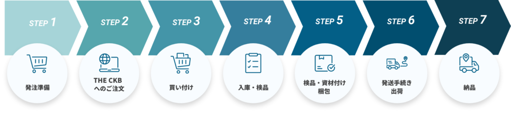 THE CKB仕入れスタッフが、商品の買い付けを行います。商品の在庫切れがあった場合は、同一商品を別の仕入れ先から買い付け致します。